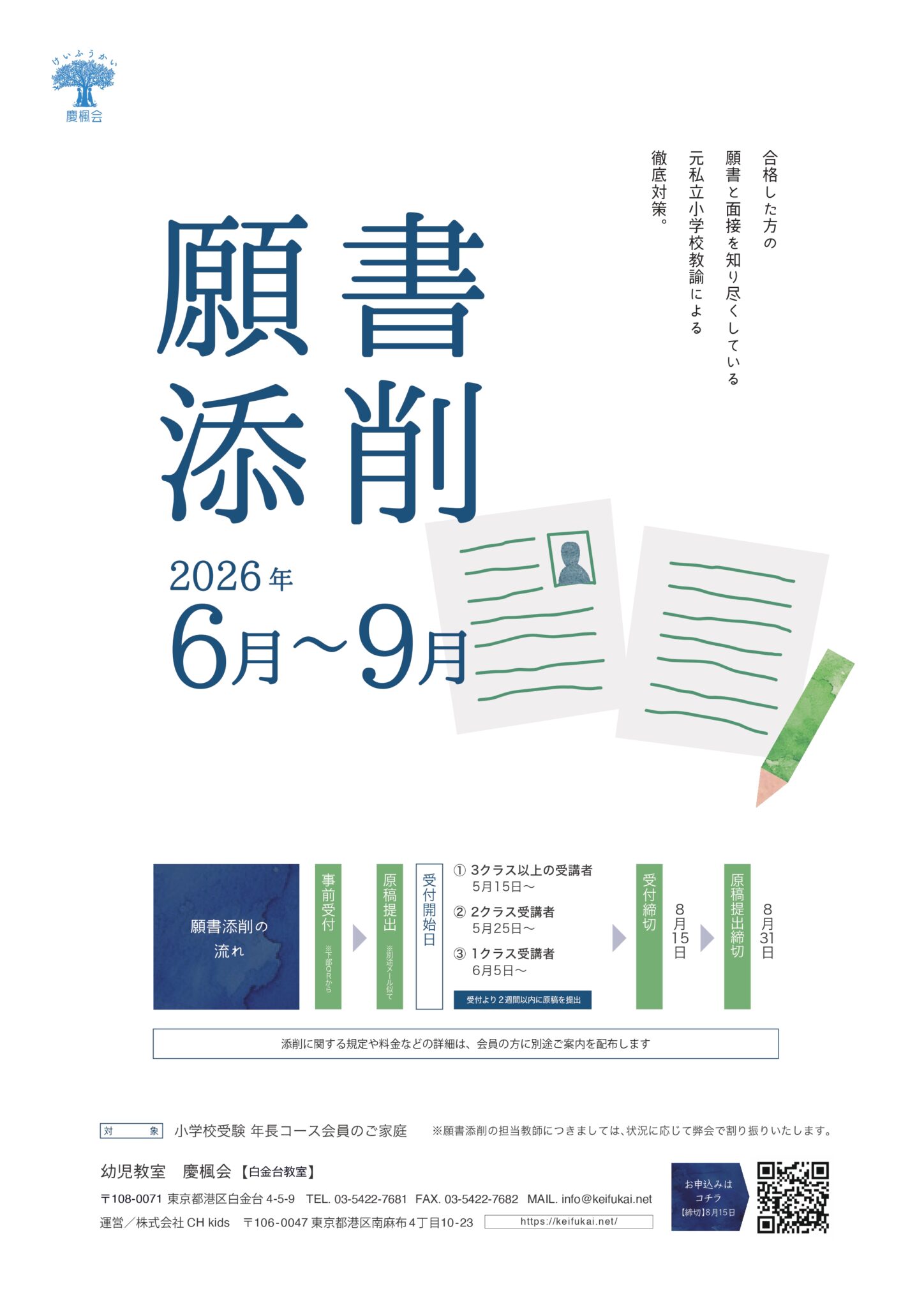 【会員限定】2026年度 願書添削(小学校受験 年長コース)