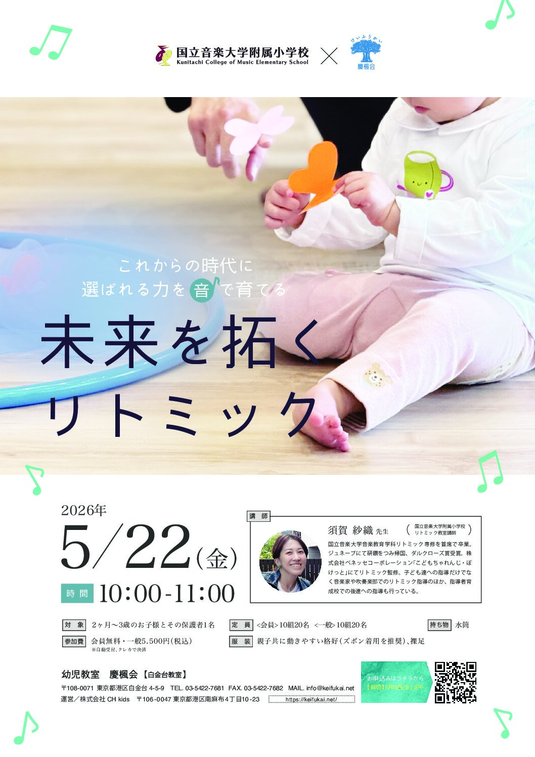 【共同開催・第2弾】国立音楽大学附属小学校×慶楓会「これからの時代に選ばれる力を音で育てる 未来を拓くリトミック」のお知らせ