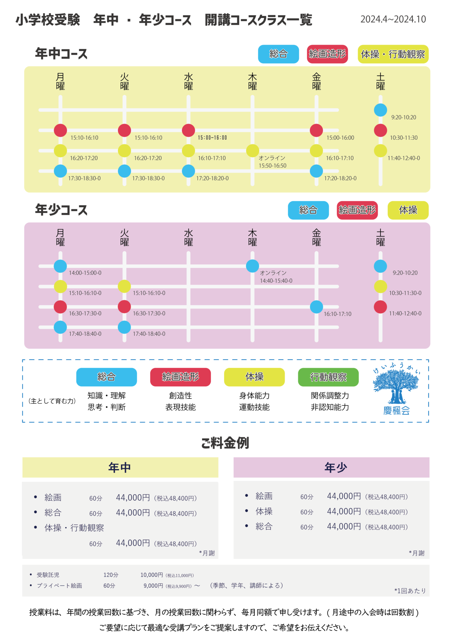 | 15:00-16:30 | 総合・体操行動観察・絵画 |