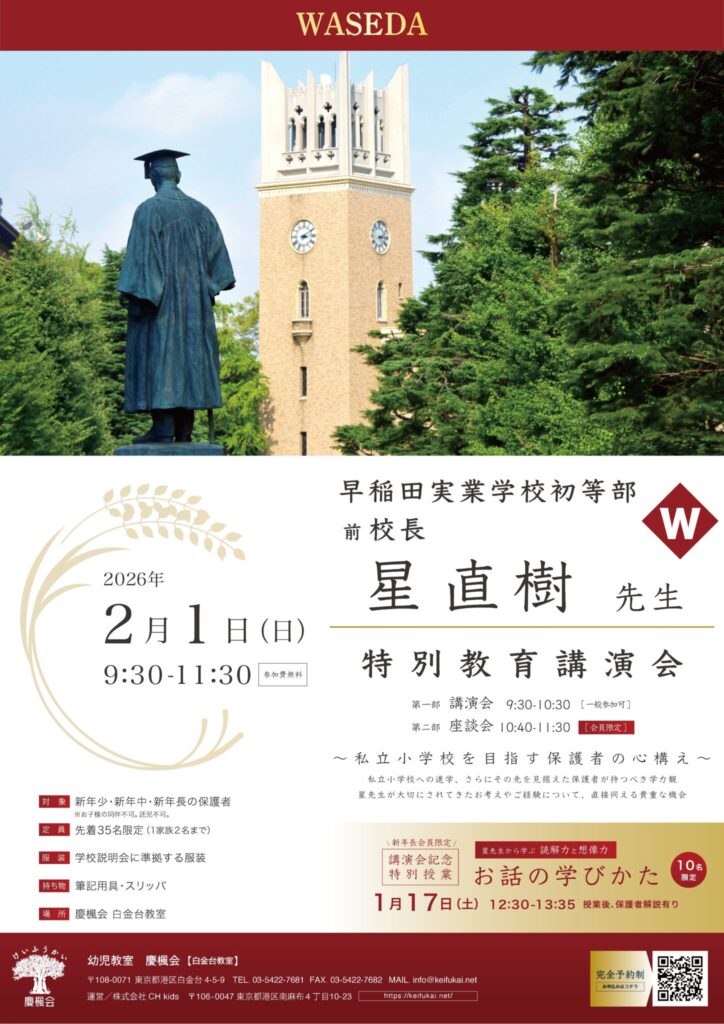 早稲田実業学校初等部 前校長 星直樹先生 特別教育講演会(小学校受験)